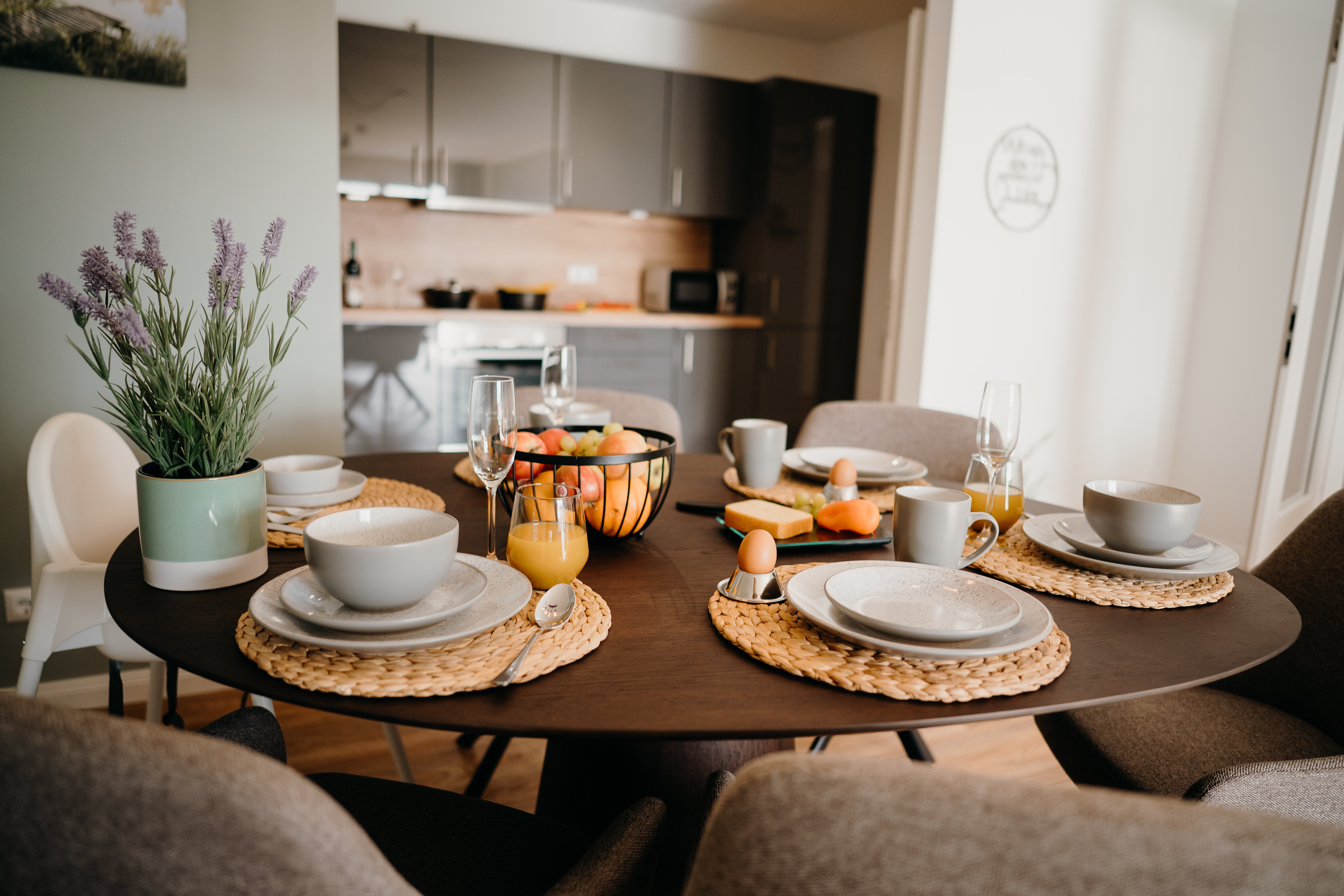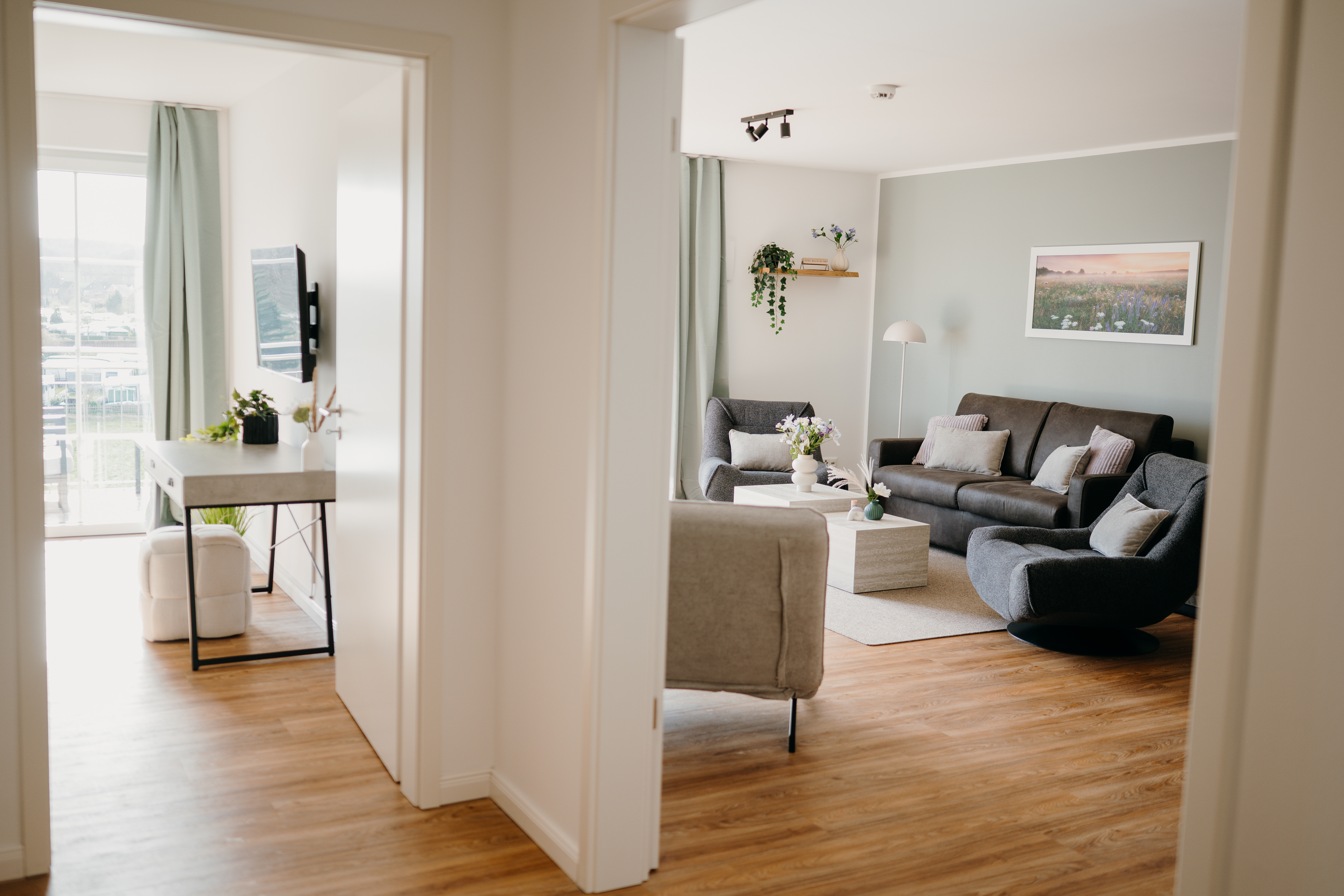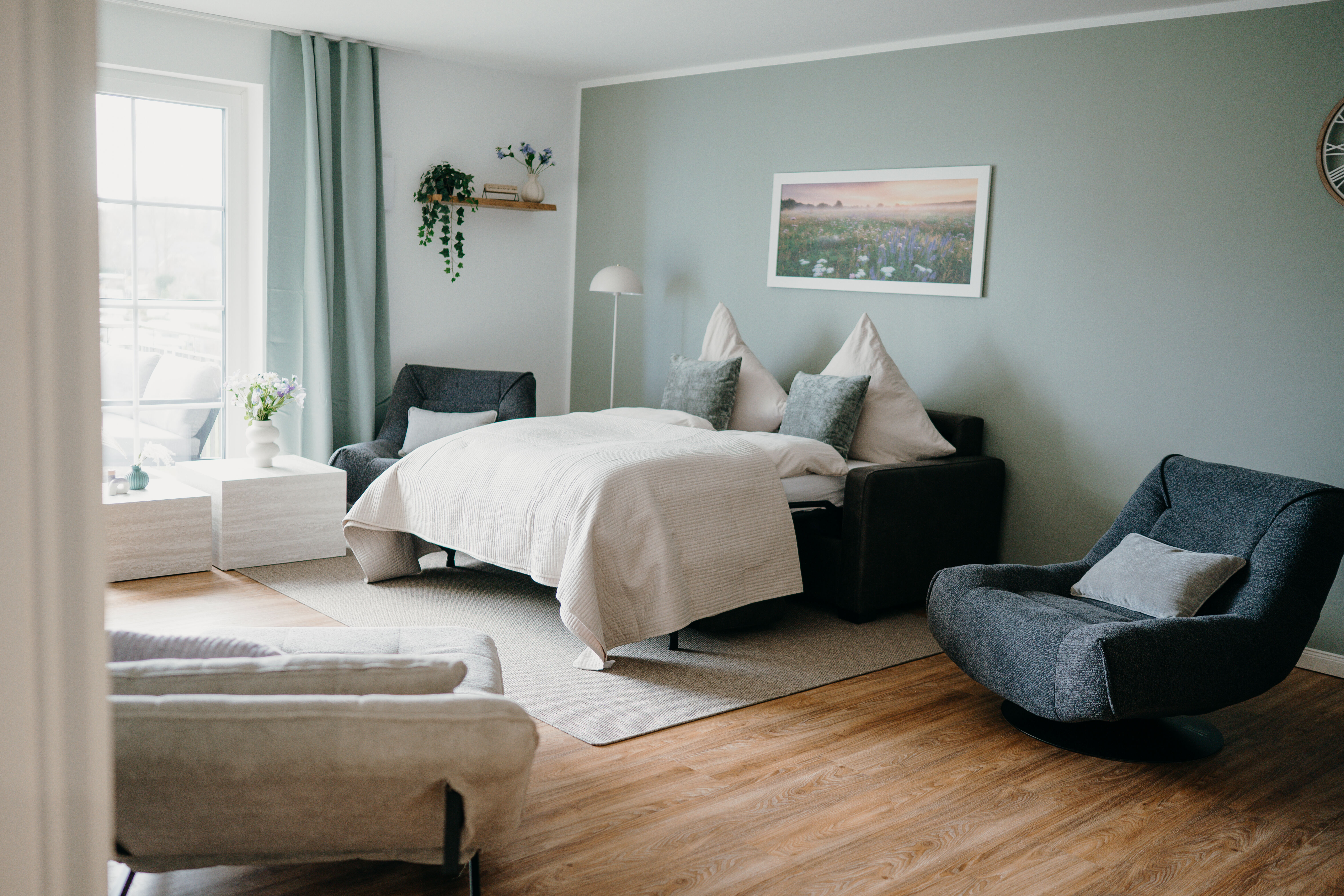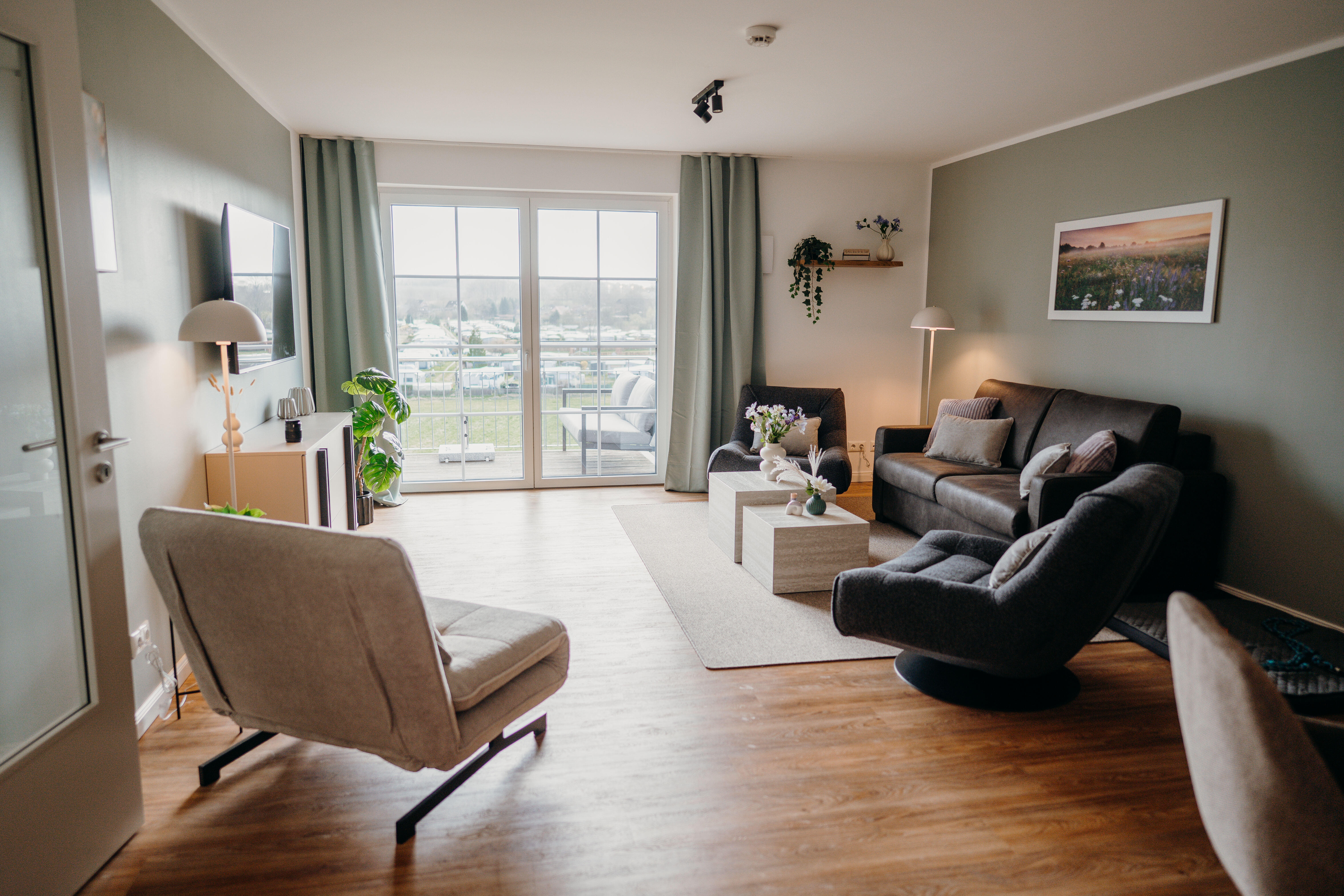 Willkommen in deiner Ferienwohnung am See – ein Ort zum Ankommen, Durchatmen und Wohlfühlen.Eingebettet in die traumhafte Plöner Seenlandschaft erwarten dich Ruhe und Natur pur, kombiniert mit modernem Komfort.Ob erholsame Tage zu zweit, Familienurlaub oder eine Auszeit mit Freunden – hier findet jeder seinen Lieblingsplatz. Barrierearme Gestaltung, ausreichend Raum und liebevolle Details sorgen dafür, dass sich alle Gäste rundum wohlfühlen.Genieße den Seeblick vom Balkon, starte den Tag mit Vogelgesang und entdecke die Natur auf Rad- und Wanderwegen direkt vor der Haustür – dein Urlaubsmoment beginnt hier.Bereits beim Betreten der ca. 80 qm großen, großzügig geschnittenen Ferienwohnung wirst du von dem einzigartigen Blick auf den See begeistert sein.Im Schlafzimmer kannst du es dir nach einem ausgedehnten Spaziergang im komfortablen Kingsizebett (180 x 200 cm) gemütlich machen. Du findest hier ausreichend Platz, um deine Sachen zu verstauen. Auf Wunsch stellen wir dir gerne ein Kinderreisebett zur Verfügung.Ein 43-Zoll Smart-TV ist ebenfalls vorhanden. Das Schlafzimmer lässt sich bei Bedarf abdunkeln.Der helle Wohn- und Essbereich bietet Platz für bis zu 5 Personen. Einen Kinderhochstuhl stellen wir dir auch hier – auf Anfrage – gerne bereit.Die Couch lädt zum Entspannen und gemütlichen Beisammensein mit tollem Seeblick ein und kann im Handumdrehen in ein komfortables Queensizebett mit vollwertiger Matratze verwandelt werden.Ein 100 cm breiter Schlafsessel kann flexibel als gemütliche Leseecke oder zusätzliche Schlafmöglichkeit genutzt werden. Auch das Wohnzimmer lässt sich bei Bedarf abdunkeln.Für entspannte Abende steht dir ein 55-Zoll Smart-TV zur Verfügung.Kostenfreies WLAN ist in allen Räumen vorhanden.In der großzügigen Regendusche (120 x 120 cm) kannst du herrlich entspannen.Eine Waschmaschine sowie ein Trockner stehen dir im großen Waschraum kostenlos zur Verfügung.Die voll ausgestattete Küche befindet sich direkt neben dem Essbereich. Neben ausreichend Geschirr und Kochutensilien findest du hier eine Kaffeemaschine, Toaster, Spülmaschine, Kühlschrank mit Gefrierfach, Backofen und Mikrowelle.Ein kostenloser, zur Ferienwohnung gehörender Parkplatz befindet sich direkt gegenüber vom Gebäude. Ein barrierefreier Parkplatz steht dir bei Bedarf direkt vor dem Haus zur Verfügung.Auch dein vierbeiniges Familienmitglied ist herzlich willkommen (für maximal einen Hund).Zugang für GästeDank der Schlüsselbox ist ein flexibler Self-Check-in möglich, sodass du bei deiner An- und Abreise zeitlich unabhängig bist.