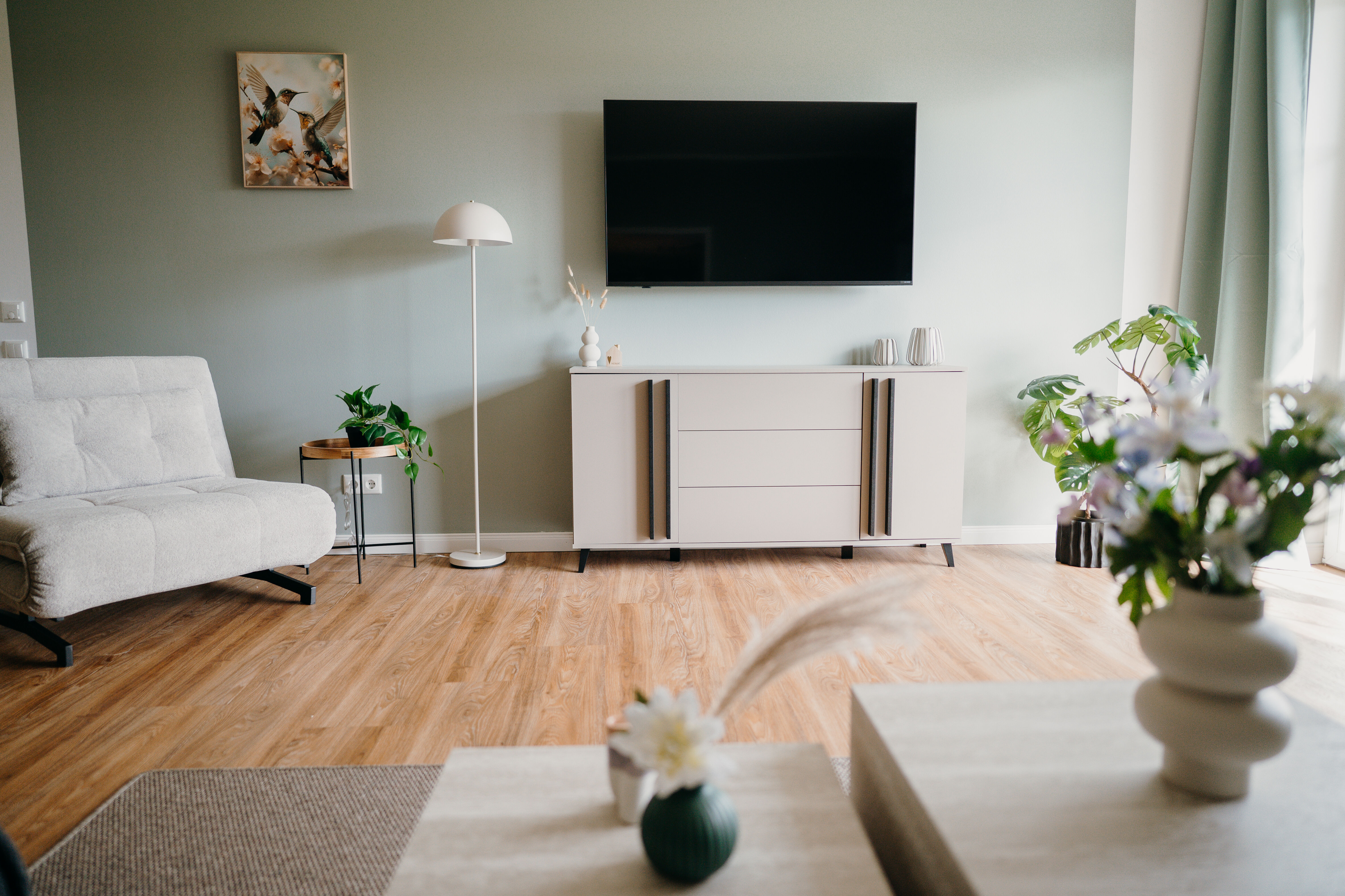 Top ausgestattetes Apartment in direkter Seelage mit Panoramablick. Freue dich auf Glasfaser-WLAN, zwei Smart-TVs und stilvollen Wohnkomfort. Der Balkon lädt zum Entspannen ein, der Wanderweg direkt am Seeufer zu ausgedehnten Spaziergängen und Fahrradausflügen. Perfekt für alle, die Natur, Ruhe und modernen Komfort am Plöner See genießen möchten – auch dein vierbeiniges Familienmitglied ist herzlich willkommen.